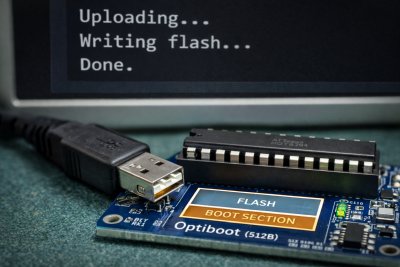 4. Programowanie: Komputer (poprzez dodatkowe oprogramowanie np. avrdude) wysyła plik .hex, który bootloader zapisuje w głównej pamięci Flash.