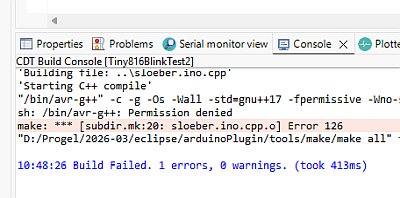 Powód: brak zmiennej środowiskowej projektu runtime.tools.avrdude.path.